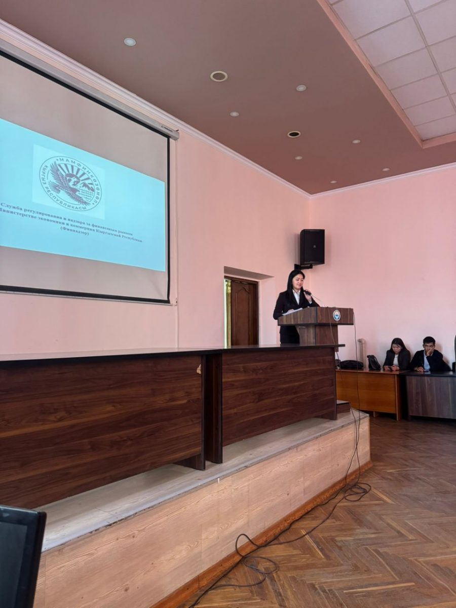 Службой регулирования и надзора за финансовым рынком при Министерстве экономики и коммерции Кыргызской Республики (Финнадзор) в рамках Плана мероприятий по реализации Положения о порядке реализации Доктрины «Национальный дух – мировые высоты» и повышения финансовой грамотности населения по вопросам использования финансовых инструментов 14 октября 2025 года проведена гостевая лекция для студентов выпускных курсов профессионального колледжа Кыргызского национального университета имени Жусупа Баласагына.