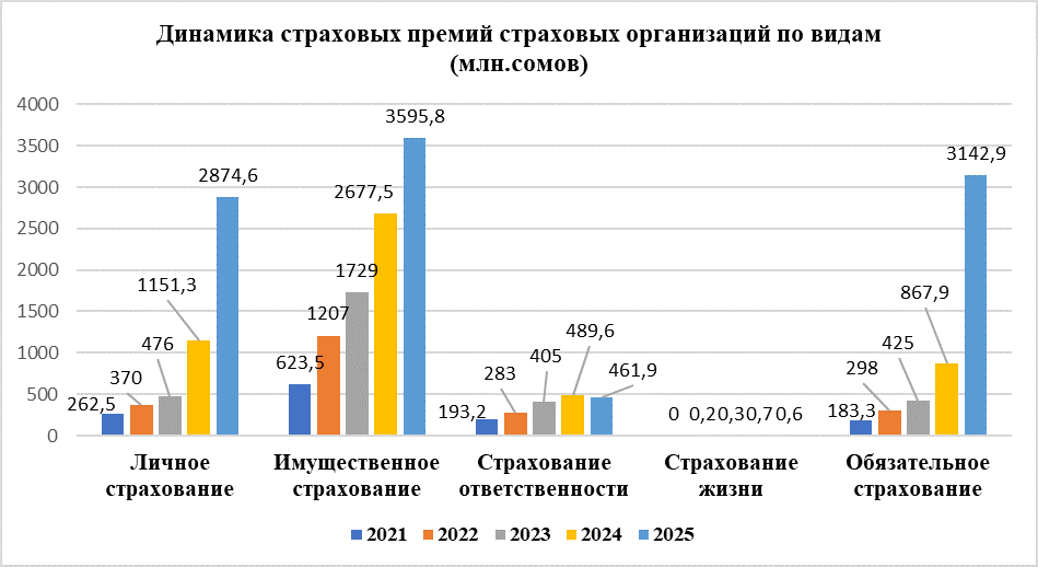 - имущественное страхование – 3 595,9 млн. сомов;